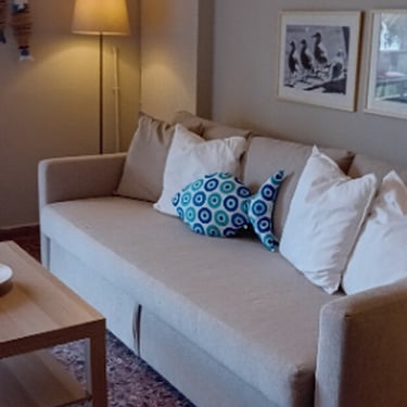 חדר שינה וחדר רחצה אחד, סלון ומטבח מאובזר.